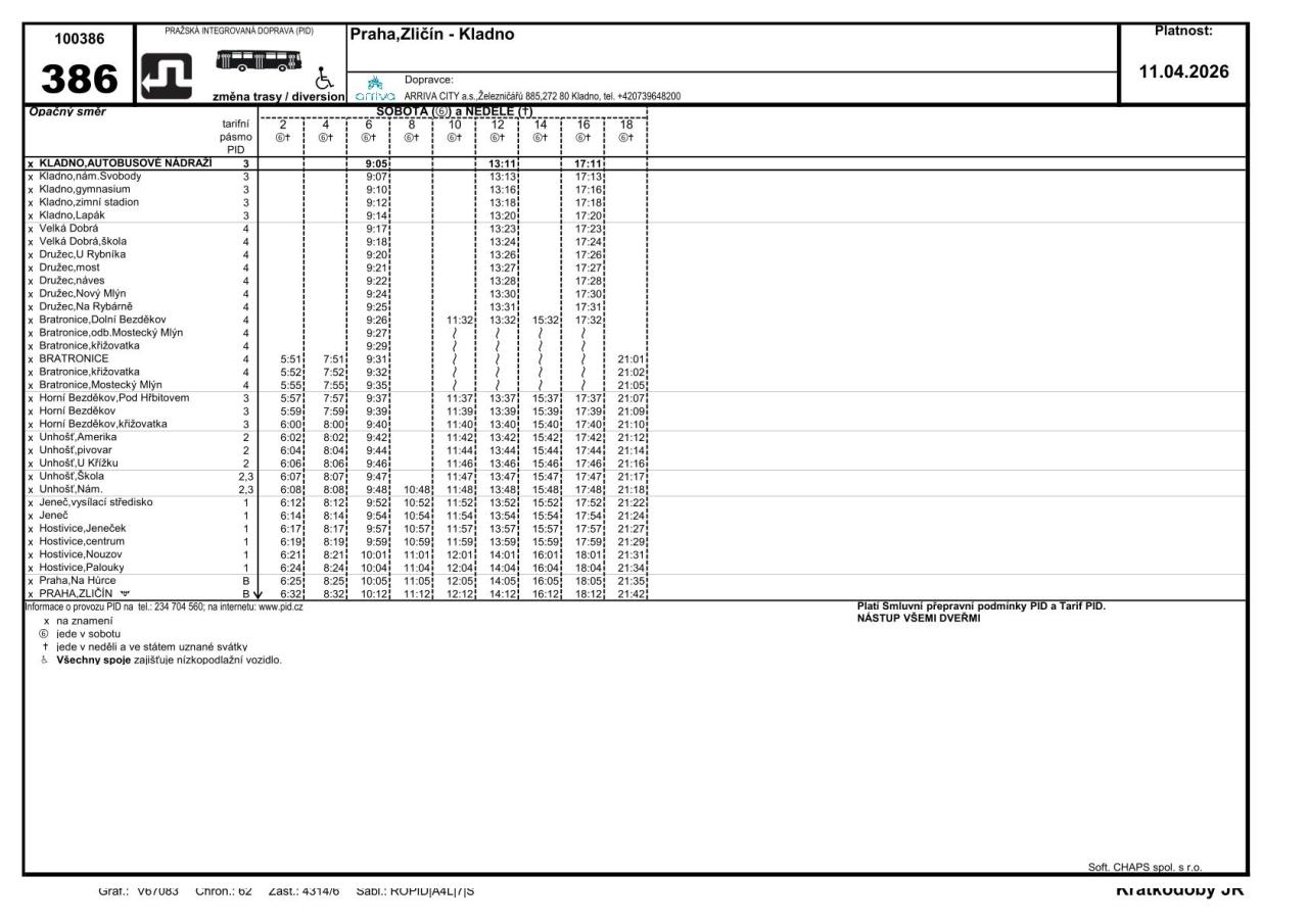 Na lince 386 se RUŠÍ bez náhrady zastávky: "Bratronice" "Bratronice, křižovatka, "Bratronice, Mostecký Mlýn", "Bratronice, odb. Mostecký Mlýn".