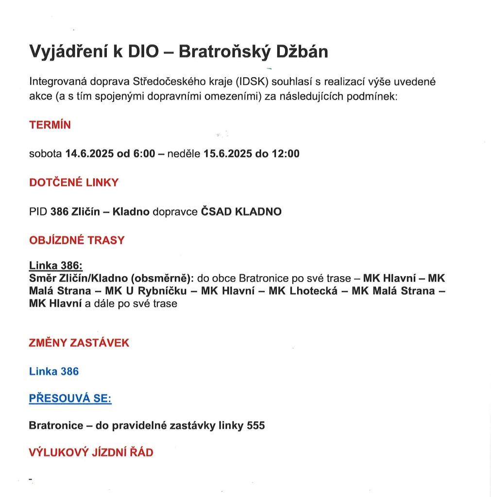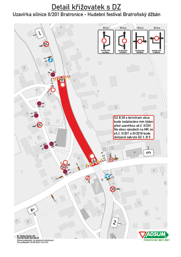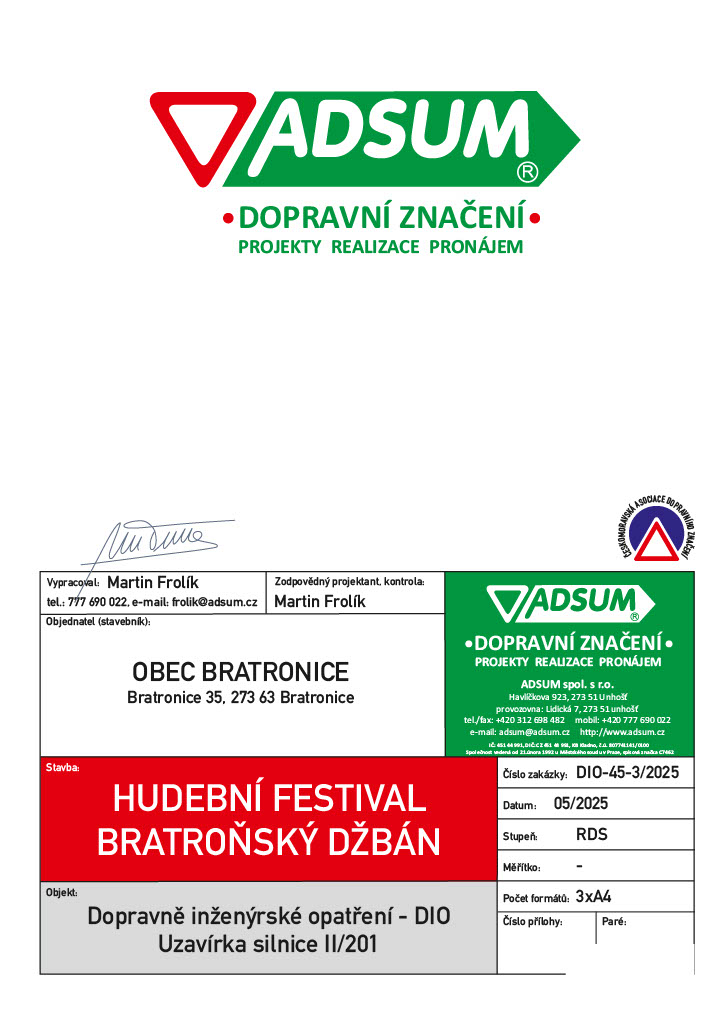 Zvláštní užívání komunikace II/201, pro pořádání kulturní akce "Bratroňský džbán".